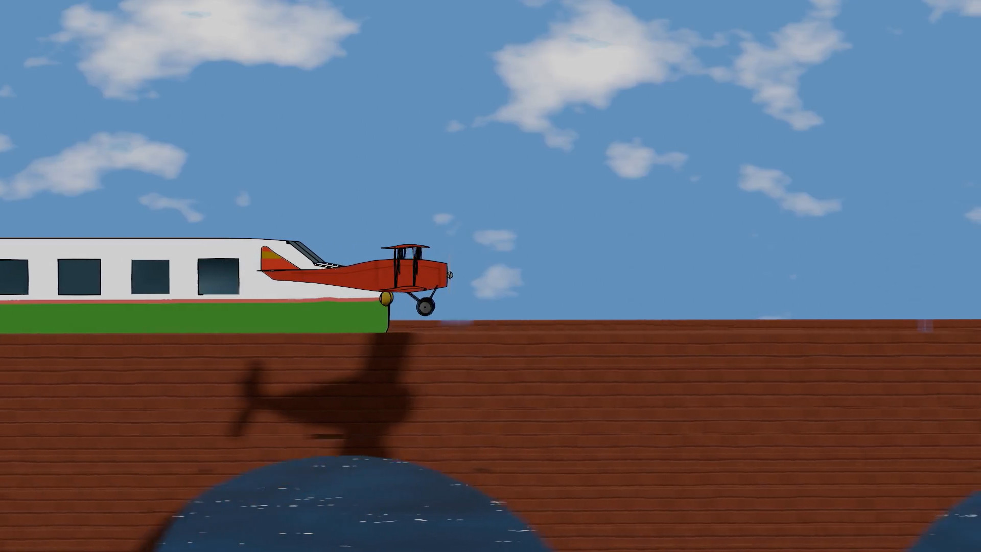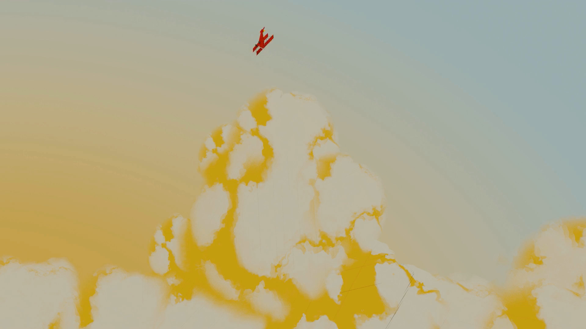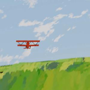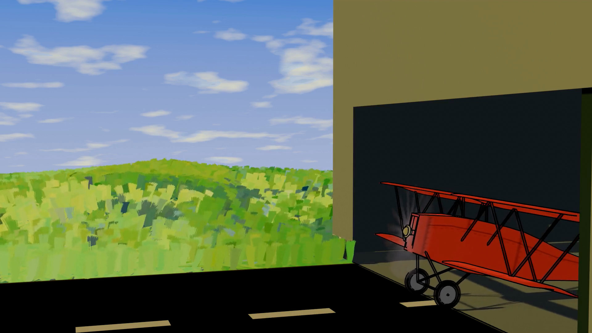 Additionally, I modelled several assets, including trees, clouds, grass… and animated around a third of the scenes, including the whole takeoff sequence, when the plane flies along a road until it reaches the sea, and the loop around the giant cloud near the end.