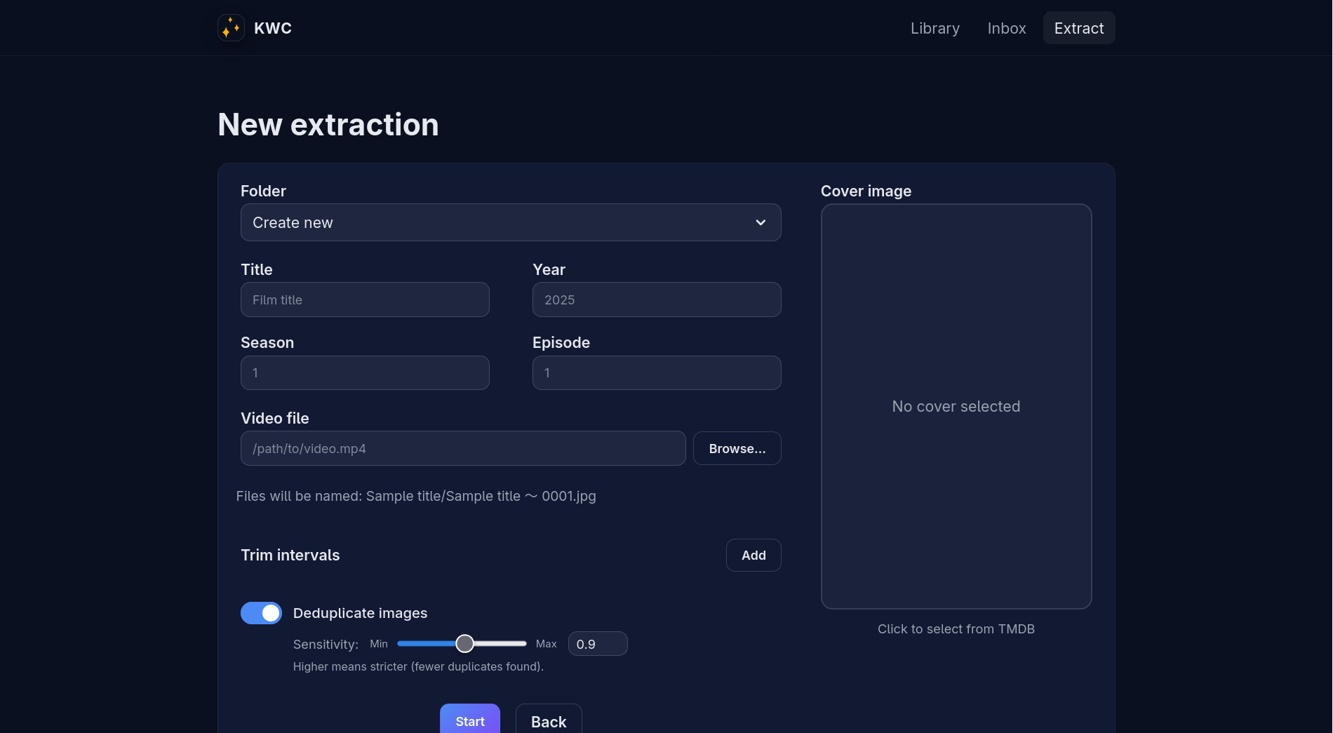 I also added an optional and configurable deduplication step to further reduce the number of frames to select to a manageable number.