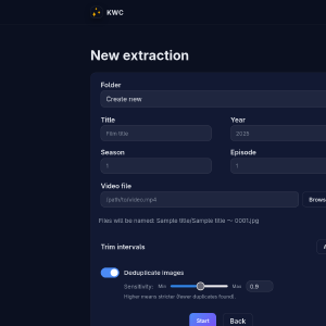 I was especially interested in the extraction part, since the rest of the app is mostly an interface over a folder and basic move/rename/delete mechanisms. In the first iterations of this project I developed a custom algorithm from scratch to be able to analyze the video file and extract the frames. Not just X frames per second, which produces an insane amount of images (most of them duplicated), but actually intelligent detection of when the video changes, and which images are “better” (lack of blur, still frames, keyframes instead of in-betweens…). This was done through the use of mathematical tools like perceptual hashing, color analysis and blur detection over a rolling window to locally detect the most “stable” frame. However, this approach was not performant and difficult to parallelize, mainly because of the file reading bottleneck.